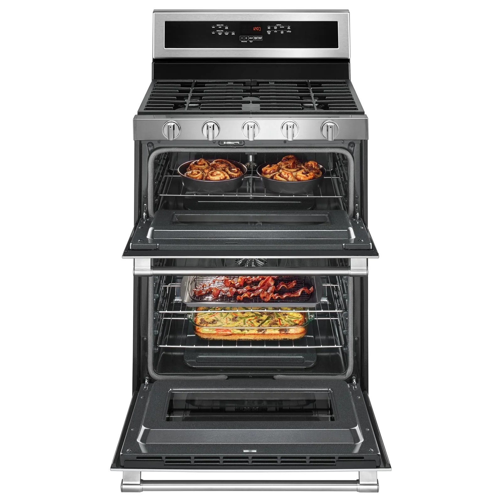 Vous pouvez compter sur cette cuisinière au gaz d’une capacité totale de 6 pi3, quelque soit la taille de votre repas. Le préchauffage rapide permet de commencer la cuisson plus tôt*, tandis que la convection véritable avec un troisième élément chauffant permet de cuire ou rôtir plus rapidement**. Par ailleurs, le brûleur Power™ vous permet de faire sauter vos aliments rapidement et uniformément, et le brûleur ovale peut accueillir des casseroles plus grandes ou des plaques de cuisson. Cette cuisinière non encastrée est accompagnée d’une garantie limitée de 10 ans†, elle est offerte en acier inoxydable résistant aux traces de doigts et elle est élaborée, conçue et assemblée aux États-Unis.